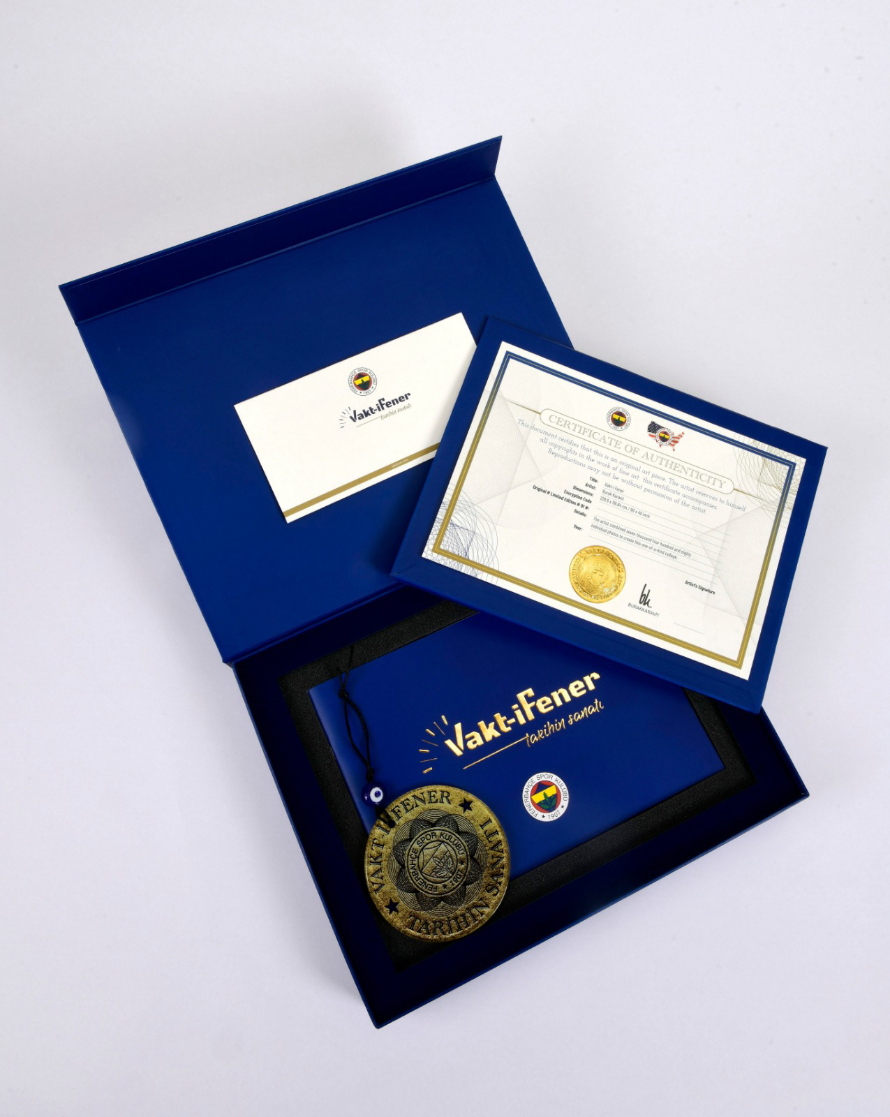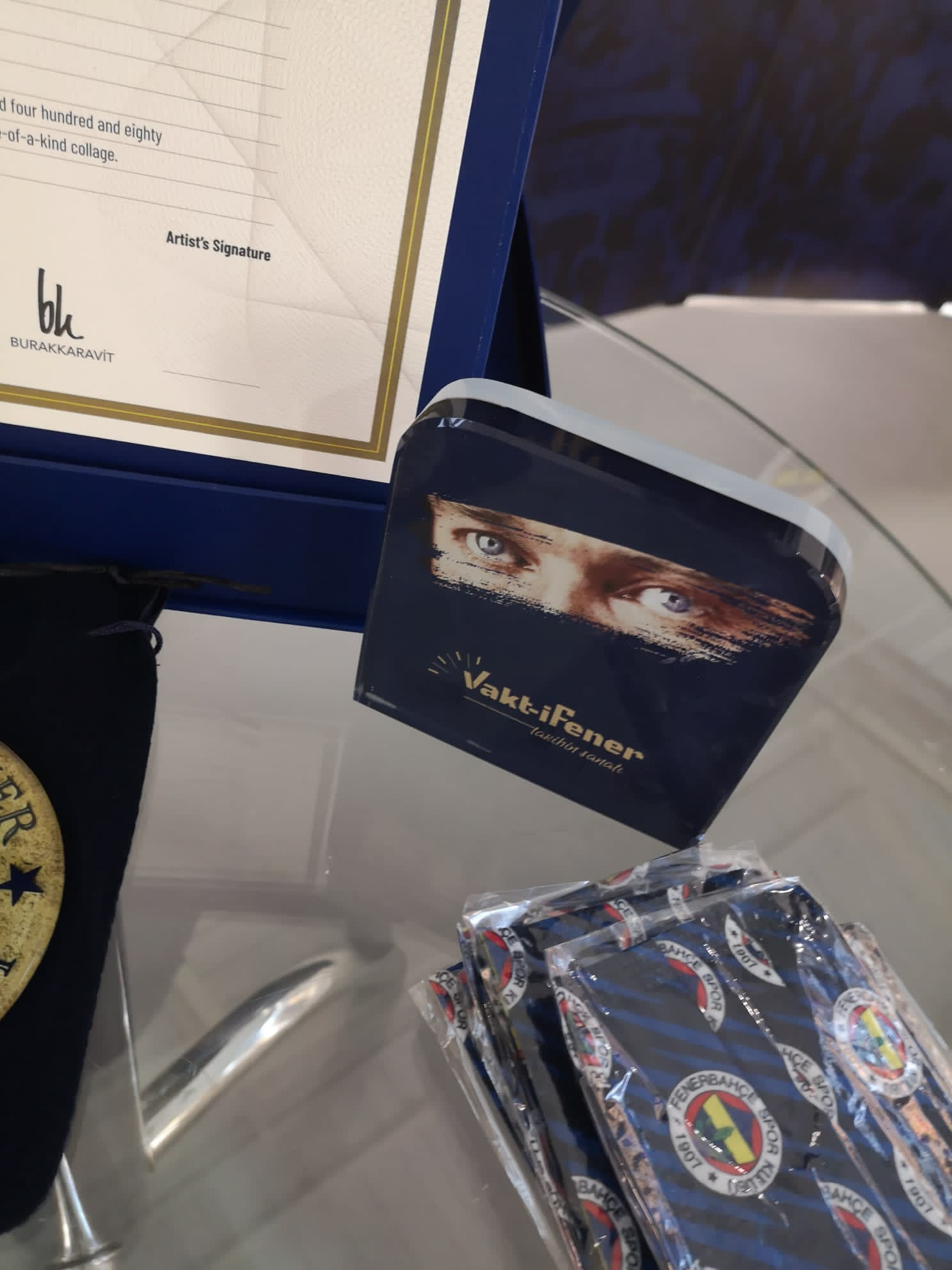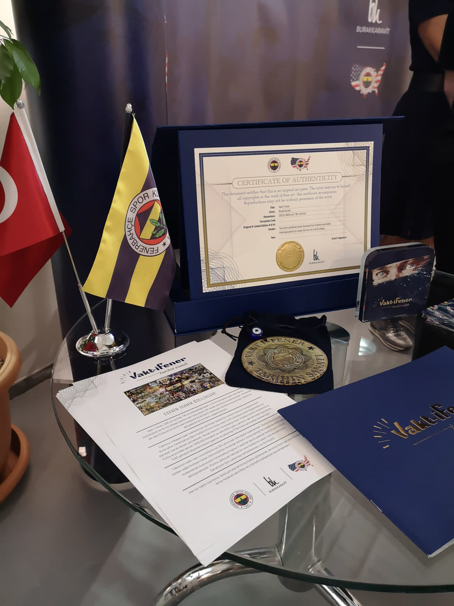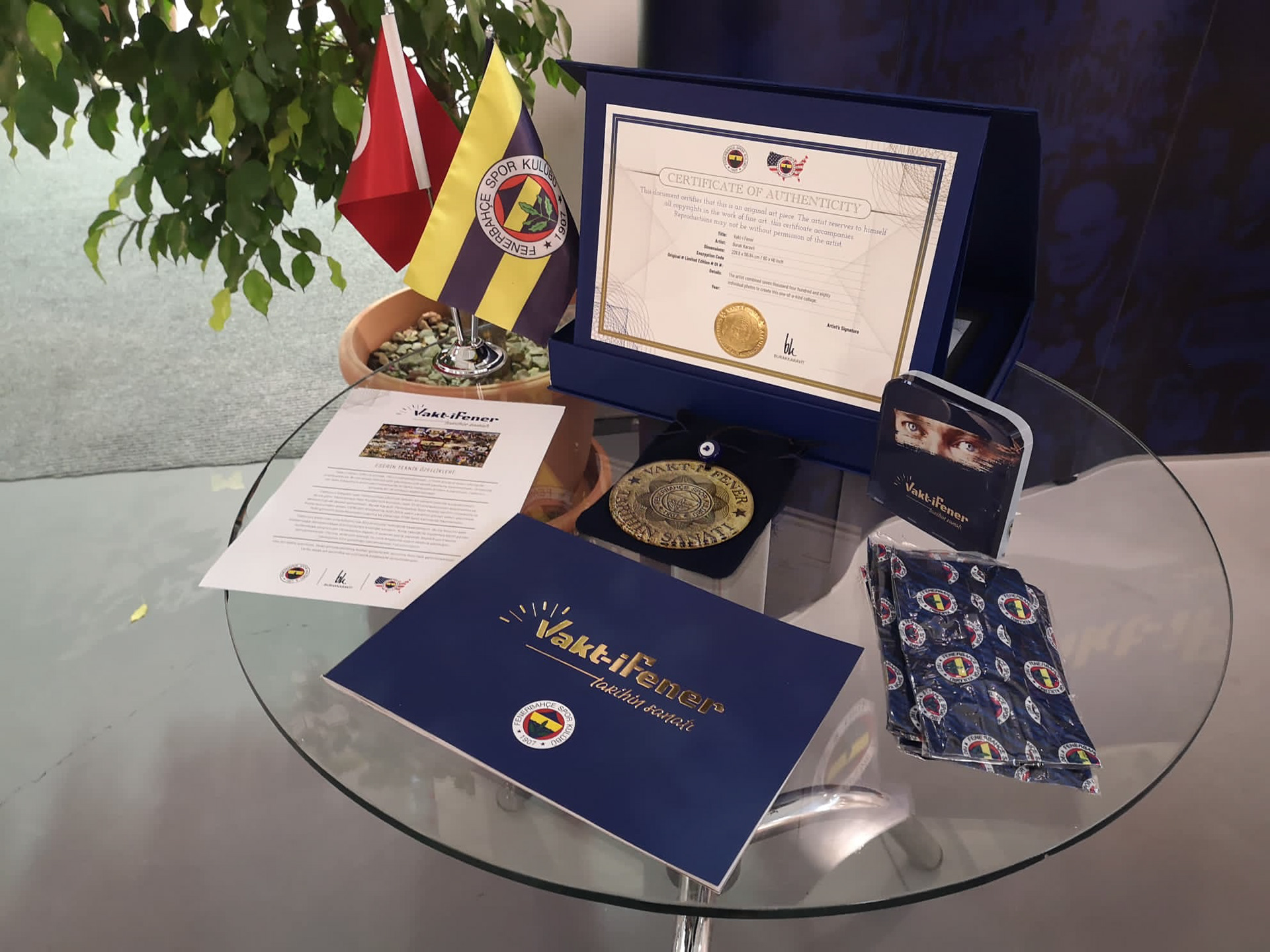 The Fenerbahçe logo transforms into an Atatürk portrait through a 5-stage transition, and the artist defines this section as an animatic, where the Fenerbahçe logo was prepared using a total of 6600 images using the collage technique. This masterpiece took approximately 1.5 years to complete, and the artist studied and analyzed the history of Fenerbahçe in depth and detail from various sources in the first six months of the work. Each piece of this exceptional art has a unique encryption code embedded into the collage and made unique to its recipient. This special code also appears on its Authentic Certificate, which was wet-signed by the artist. Vakt-i Fener is a one-of-a-kind piece of art that will be available to a limited number of people. It comes with a booklet describing the visual presentation of Fenerbahçe's chronological history, and it is delivered to the art lover's address with great care in its specially produced wooden box, with its original seal and certificate.
